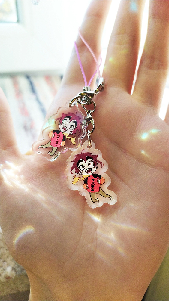 Небольшой акриловый брелок с ярким дизайном "Киря и бензин" от художницы BloXa. Великолепный аксессуар для украшения смартфона, сумки или связки ключей. Изображение нанесено двусторонней уф-печатью на профессиональном оборудовании, оно получается четким, красочным и детальным. Брелок из прочного прозрачного акрила, укомплектован нейлоновой нитью с карабином.Размер - 3 см