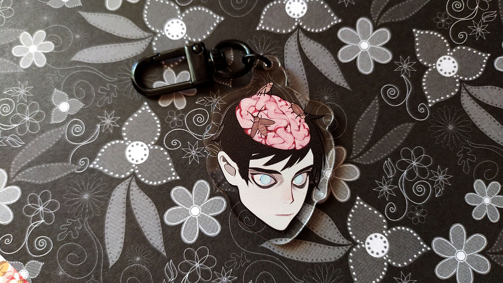 Акриловый брелок с авторским дизайном "Тараканы в голове" от художницы BloXa. Арт нанесен на качественный прозрачный акрил двусторонней уф-печатью на профессиональном оборудовании. Благодаря этому изображение получается четким и красочным. В комплекте есть замок-карабин, который позволяет прикрепить брелок к рюкзаку, сумке или связке ключей.Размер - 5 см (без учета карабина)