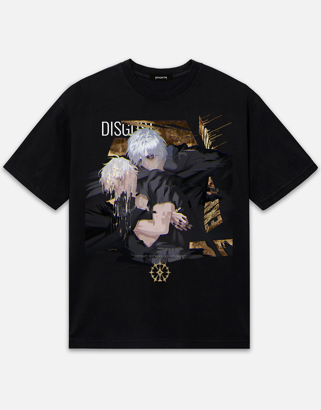 Черная футболка с дизайном «Disgust» от художника Pogogu.- Материал - 100% хлопок высокого качества