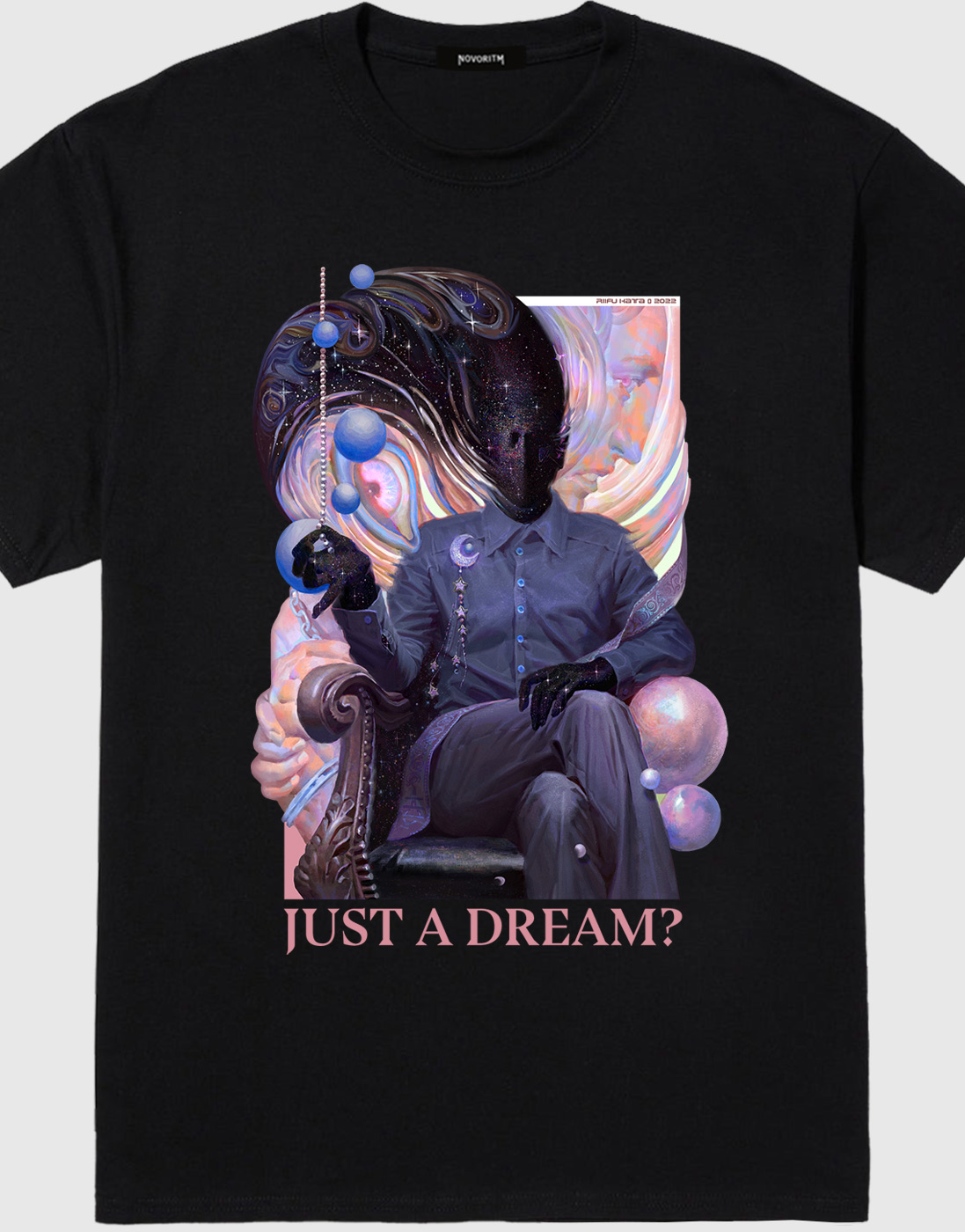 Футболка с дизайном «Это просто сон?» от художника RIFU hata. О чём же хочет поговорить тот, кто пришёл к вам во сне? И куда он уйдёт, когда закончит речь?- Материал - 100% хлопок высокого качества