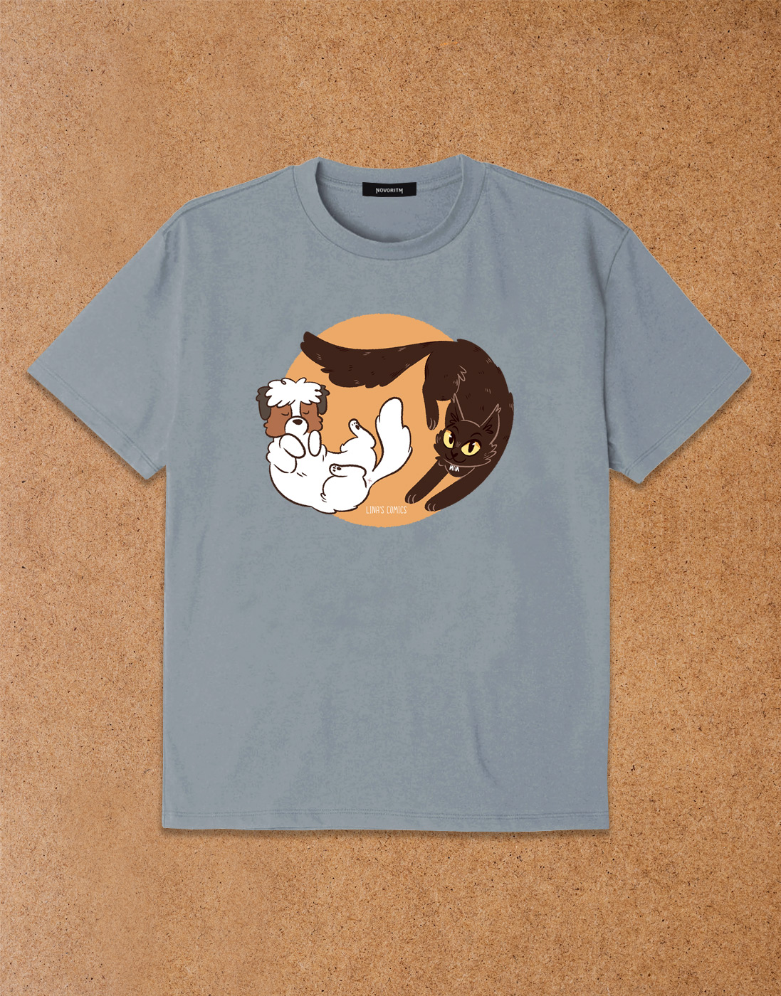 Серая футболка с принтом кошки и собаки, весело играющими друг с другом. Добрый и красивый дизайн от художницы Lina's Comics. Футболка изготовлена из мягкого и приятного на ощупь натурального хлопка, который обеспечивает максимальный комфорт. Принт нанесён современной технологией DTF на профессиональном оборудовании. Изображение получается ярким и четким, не трескается при растягивании и не выцветает после множества стирок. Модель унисекс - подходит как мужчинам, так и женщинам. Отличный выбор для повседневной носки и создания ярких образов.Характеристики