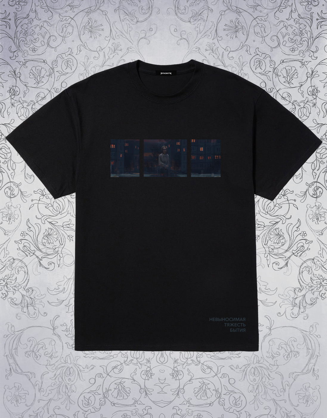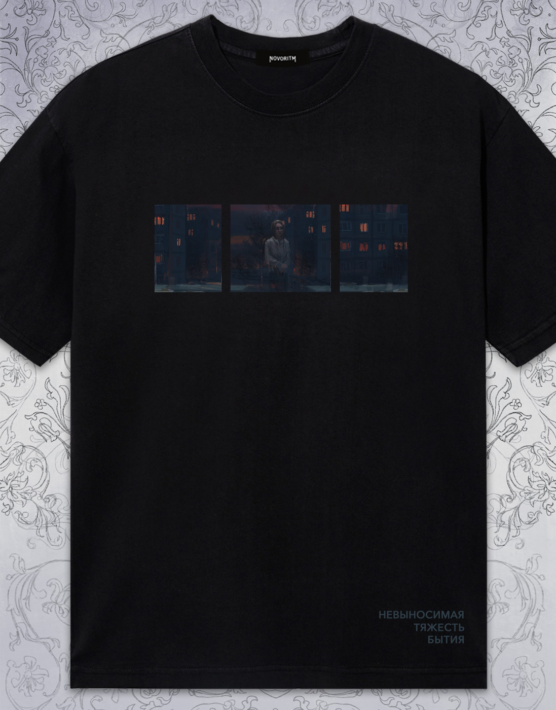 Черная футболка с дизайном «Невыносимая тяжесть бытия» от художницы ParaCosm.- Материал - 100% хлопок высокого качества