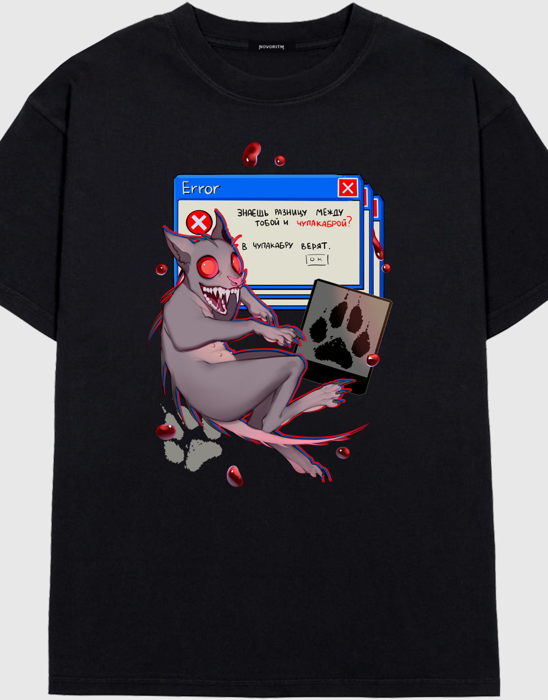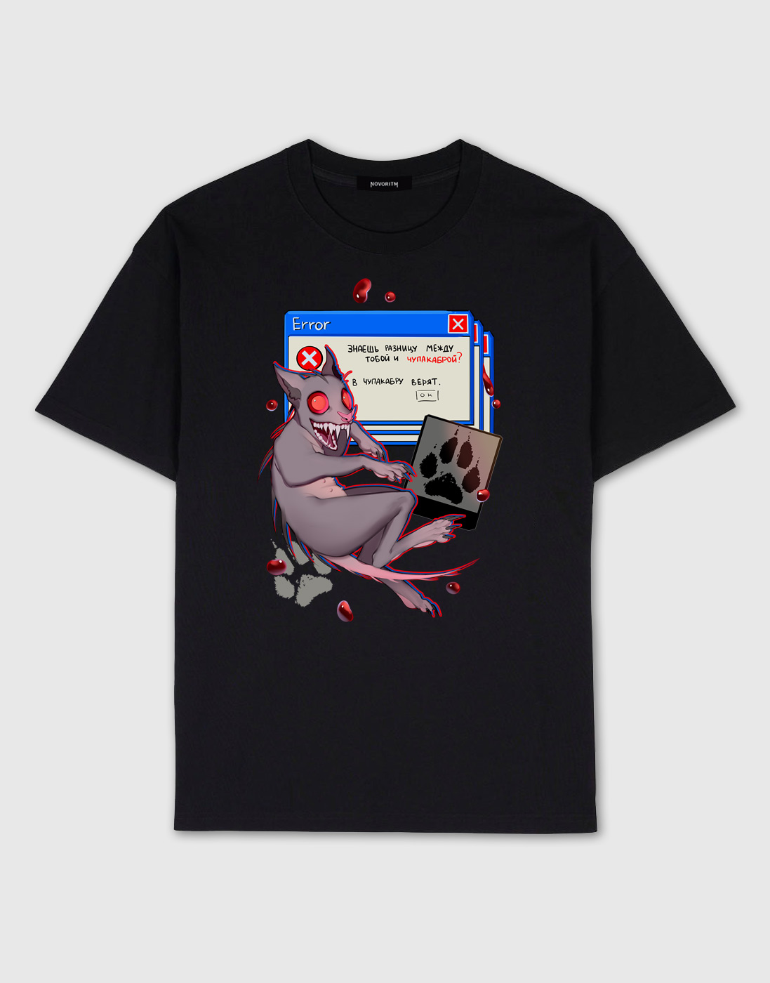 Черная футболка оверсайз с авторским принтом «Чупакабра» от художницы BloXa.- Материал - 100% хлопок высокого качества