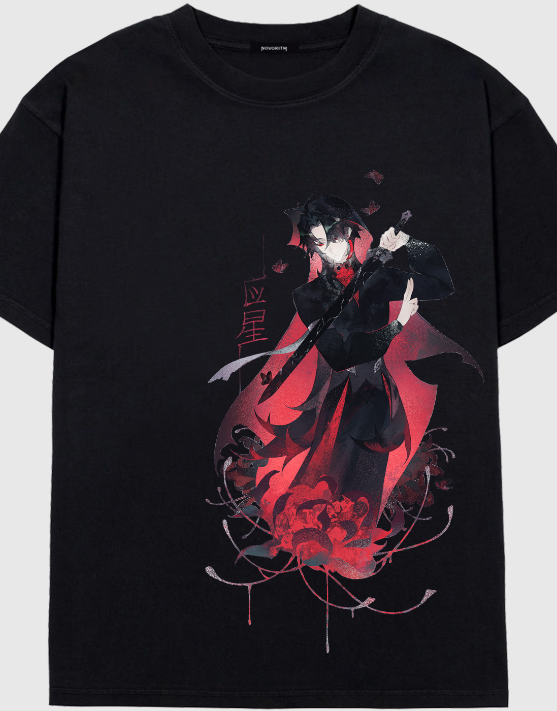 Черная футболка оверсайз с принтом в азиатском стиле «Блейд» от художника Søll. Принт смещен от центра, что выглядит гармонично с изображенным персонажем.- Материал - 100% хлопок высокого качества