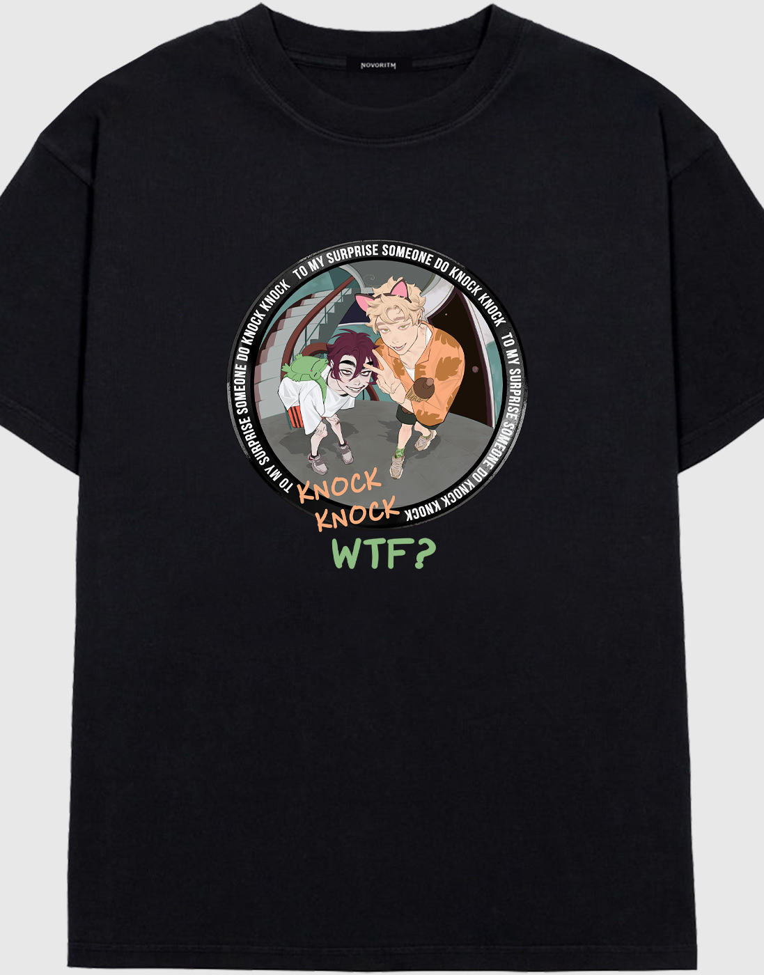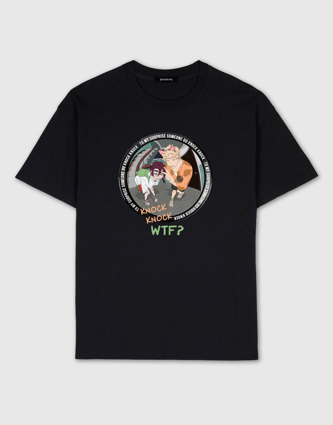 Футболка оверсайз с принтом «Knock Knock WTF?» от художницы BloXa.- Материал - 100% хлопок высокого качества