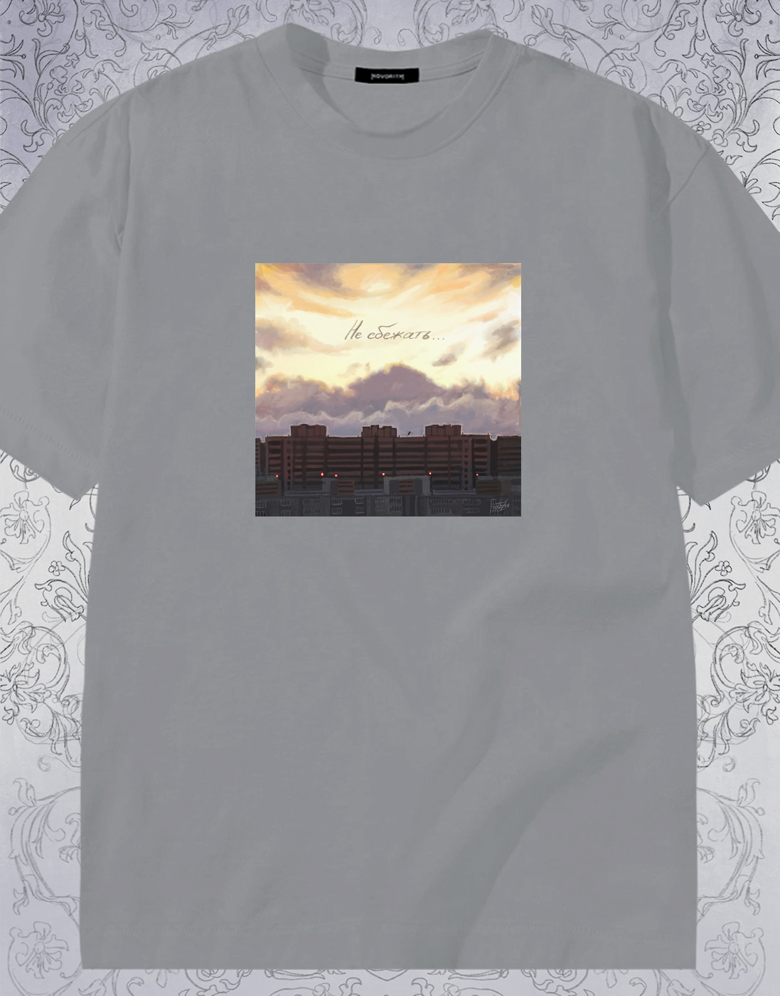Серая футболка с дизайном «Не сбежать» от художницы ParaCosm.- Материал - 100% хлопок высокого качества