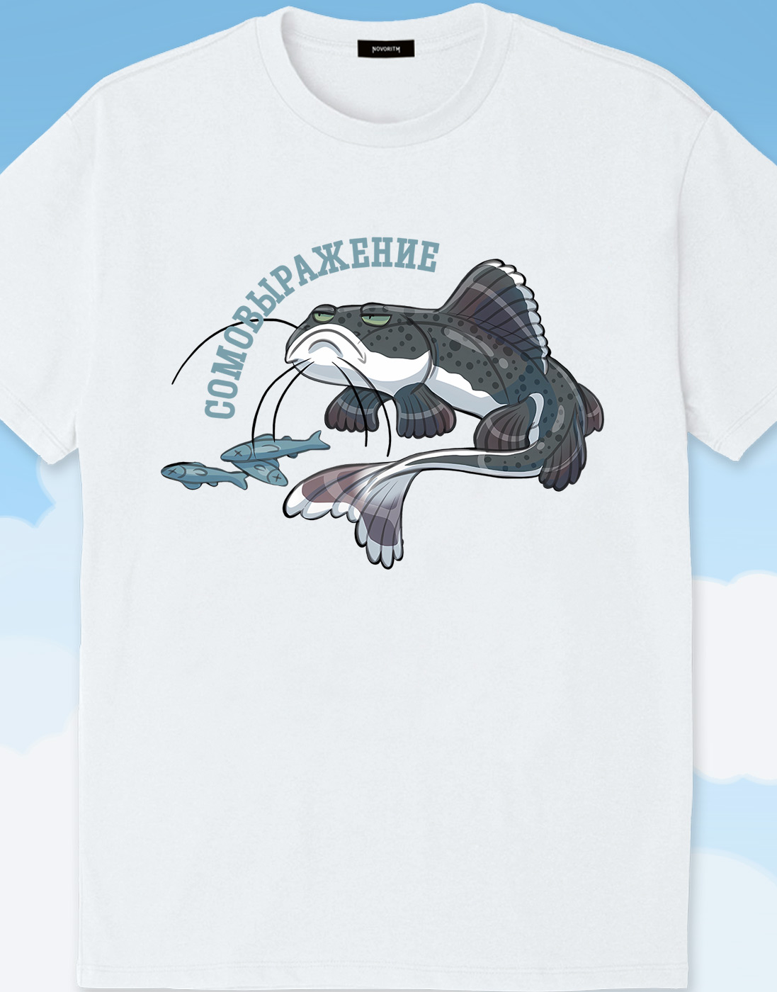 Футболка с изображением сома и надписью «Сомовыражение» от художницы комикса «Застенчивый упырь».- Материал - кулирная гладь качества пенье (высшее)