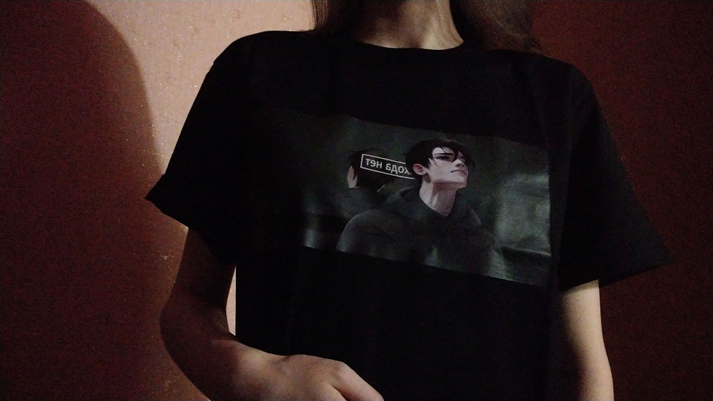 Мягкая, приятная к телу, плотная футболка. Думаю, отлично впишется на sad vibes-дни. На таких вайбах - такое фото)