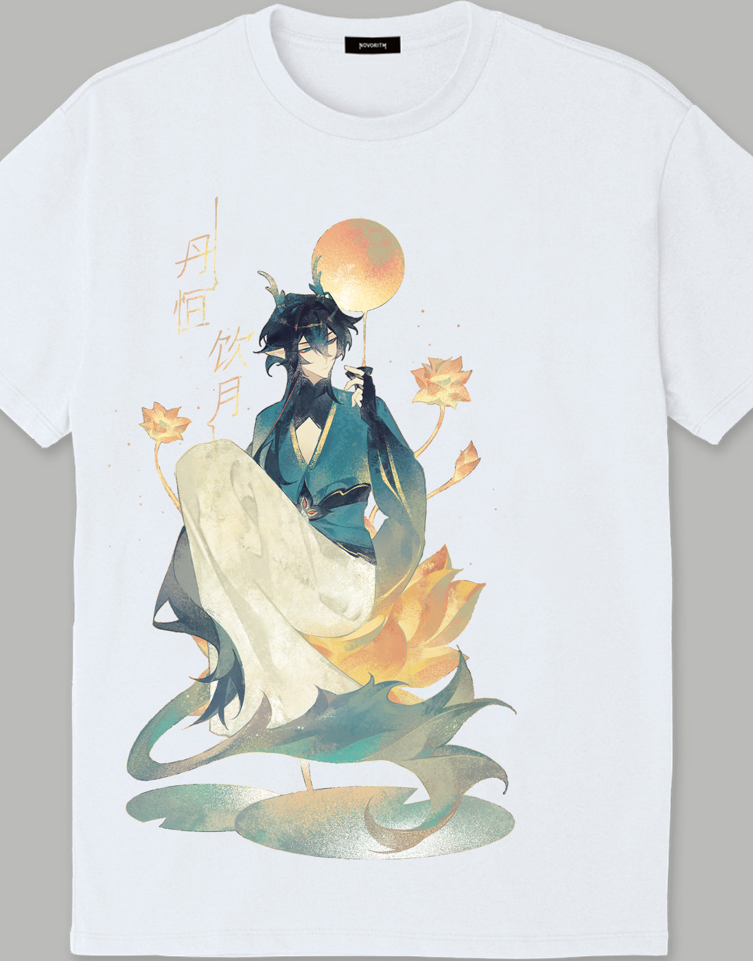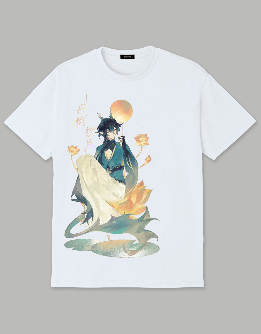 Красивая белая футболка «Дань Хэн» от художника Søll. Принт смещен от центра, что выглядит гармонично с изображенным персонажем.- Материал - 100% хлопок премиум качества