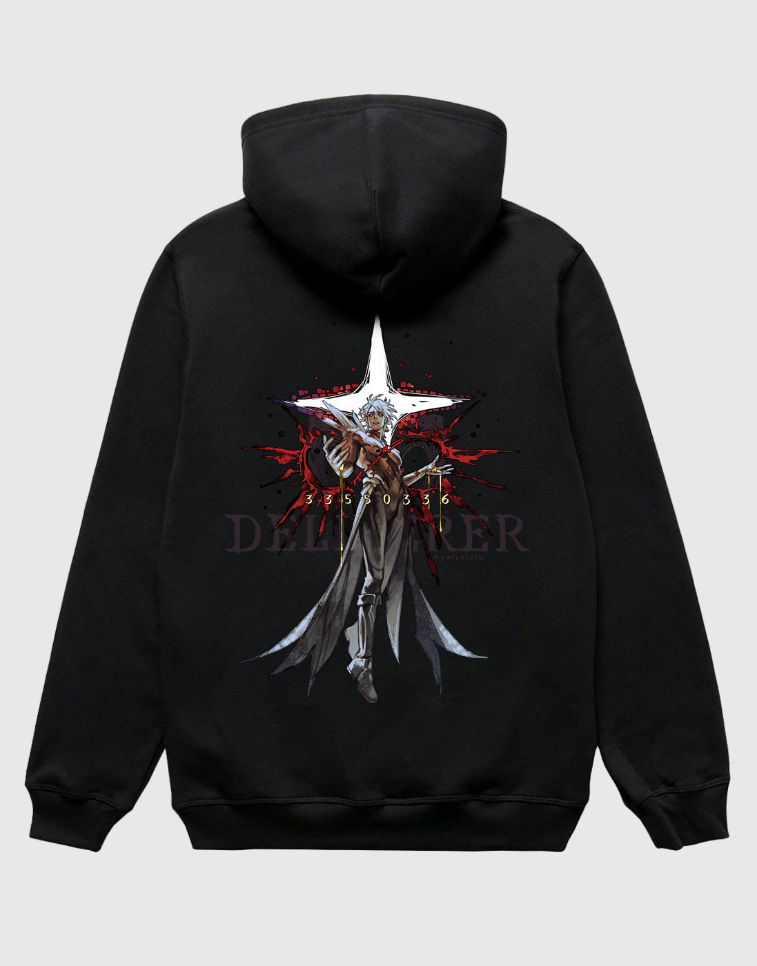 Худи со стильным дизайном «Deliverer» от художницы SaiprinSK. Принты нанесены на груди и на спине.- Материал - турецкий футер 3х-нитка петля