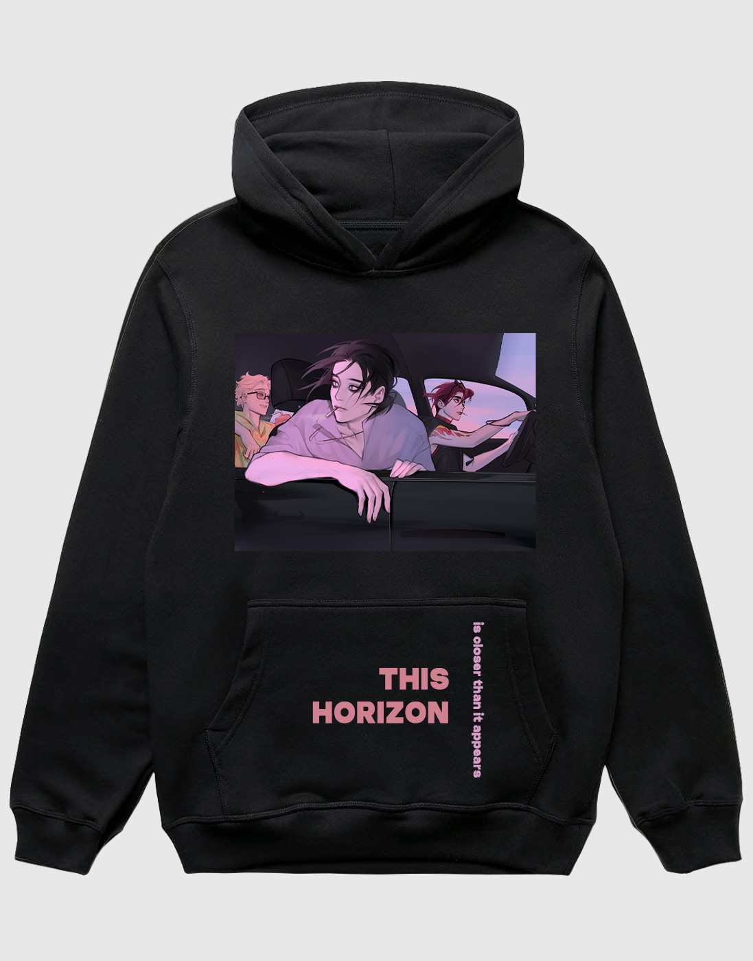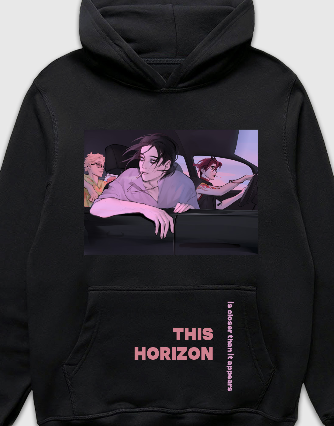 Худи с крутым дизайном «Этот горизонт ближе, чем кажется» от художницы BloXa. Помимо атмосферного изображения, на карман-кенгуру добавлена надпись «This Horizon Is Closer Than It Appears».- Материал - турецкий футер 3х-нитка петля