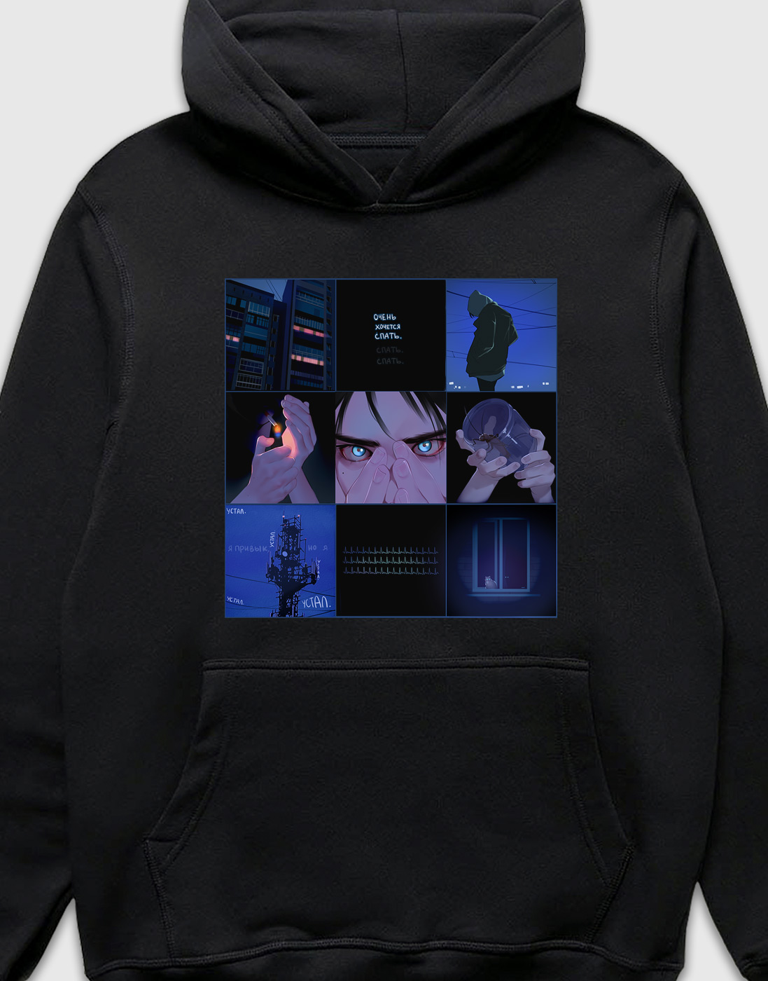 Черный худи с эстетическим принтом от художницы BloXa.- Материал - турецкий футер 3х-нитка петля