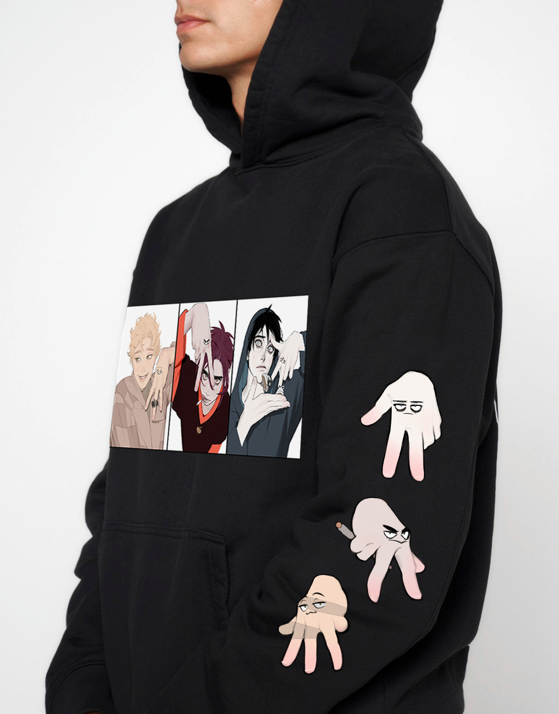 Худи с дизайном «Ручки» от художницы BloXa с принтами на груди и рукавах.- Материал - турецкий футер 3х-нитка петля