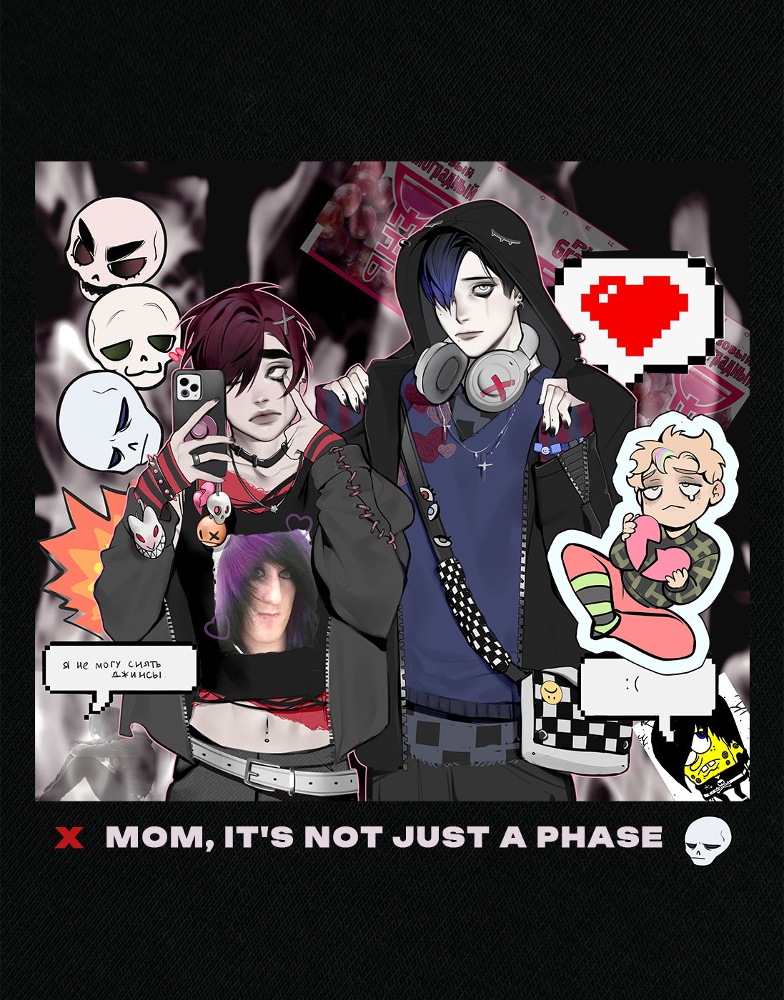 Худи с крутым дизайном «Сентябрь» от художницы BloXa. Изображение дополнено надписью «Mom, It's Not Just A Phase».- Материал - турецкий футер 3х-нитка петля