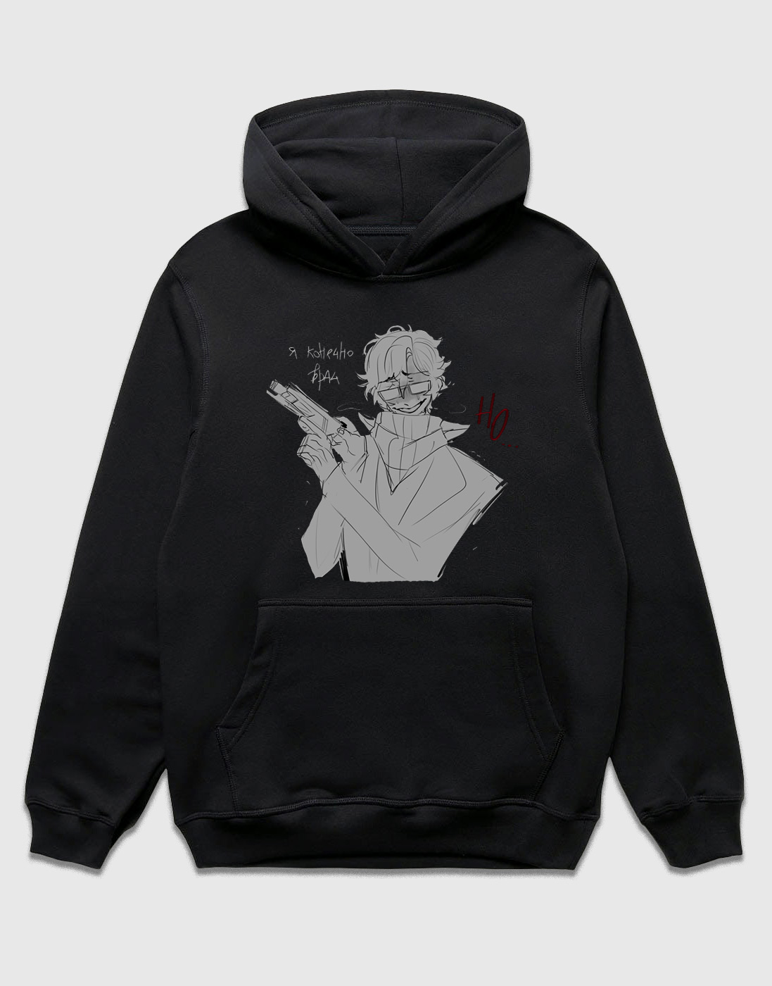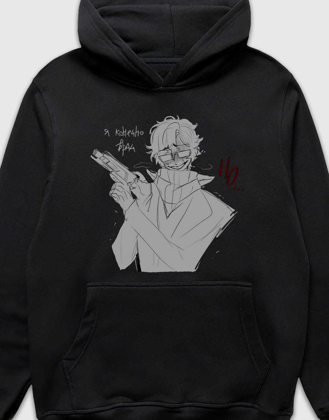 Черное худи с принтом "Я конечно врач, но..." от художницы ilwha.- Материал - турецкий футер 3х-нитка петля