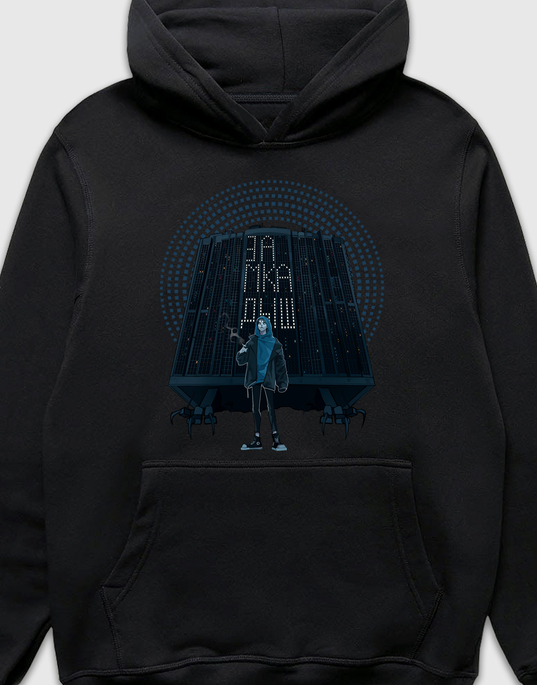 Черный худи с принтом "Замкадыш" от художницы BloXa.- Материал - турецкий футер 3х-нитка петля
