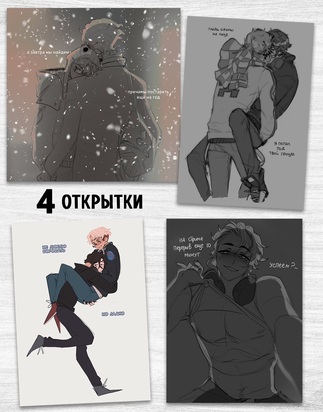 Набор включает в себя 4 открытки с артами художницы ilwha. Иллюстрации напечатаны на плотном дизайнерском картоне 350 г/м2 на профессиональном печатном оборудовании с великолепной цветопередачей. Открытки двусторонние - на обороте есть разлинованное место для текста или поздравления. Размеры: 3 в районе формата А6 (10,5х14,8 см), одна квадратная - 15x15 смВам могут понравиться