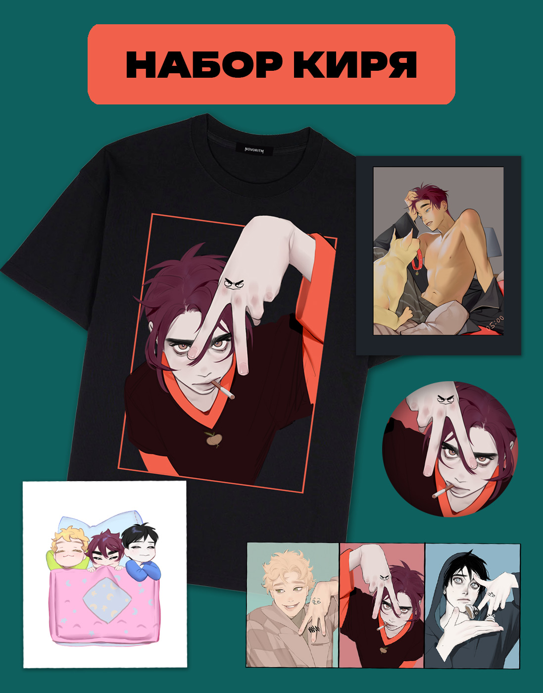 Набор «Киря» от художницы BloXa включает в себя:- Футболку оверсайз «Ручки Кири»