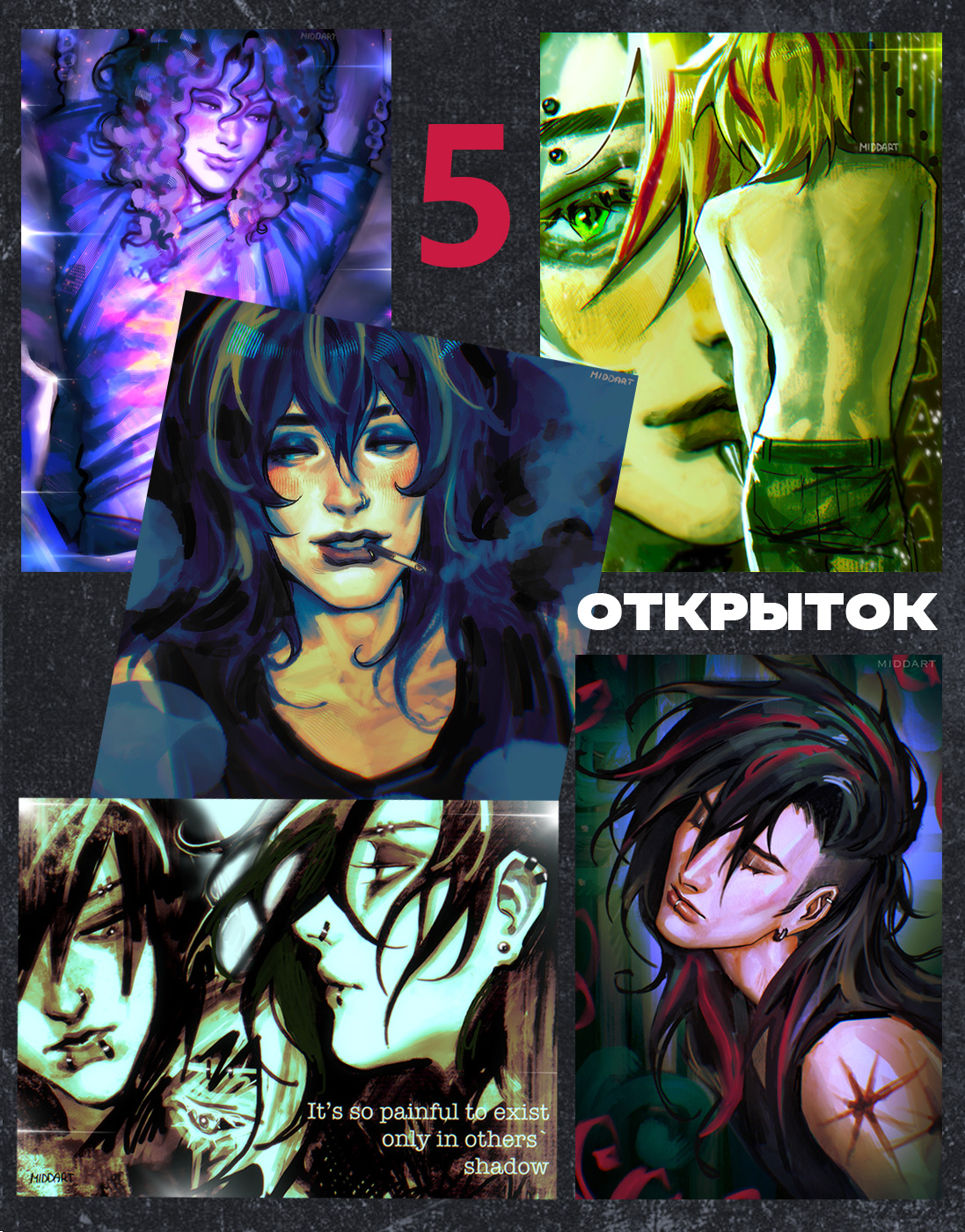 Набор из 5 открыток от художника моль.png.- Иллюстрации напечатаны на дизайнерской бумаге плотностью 300 г/м2.