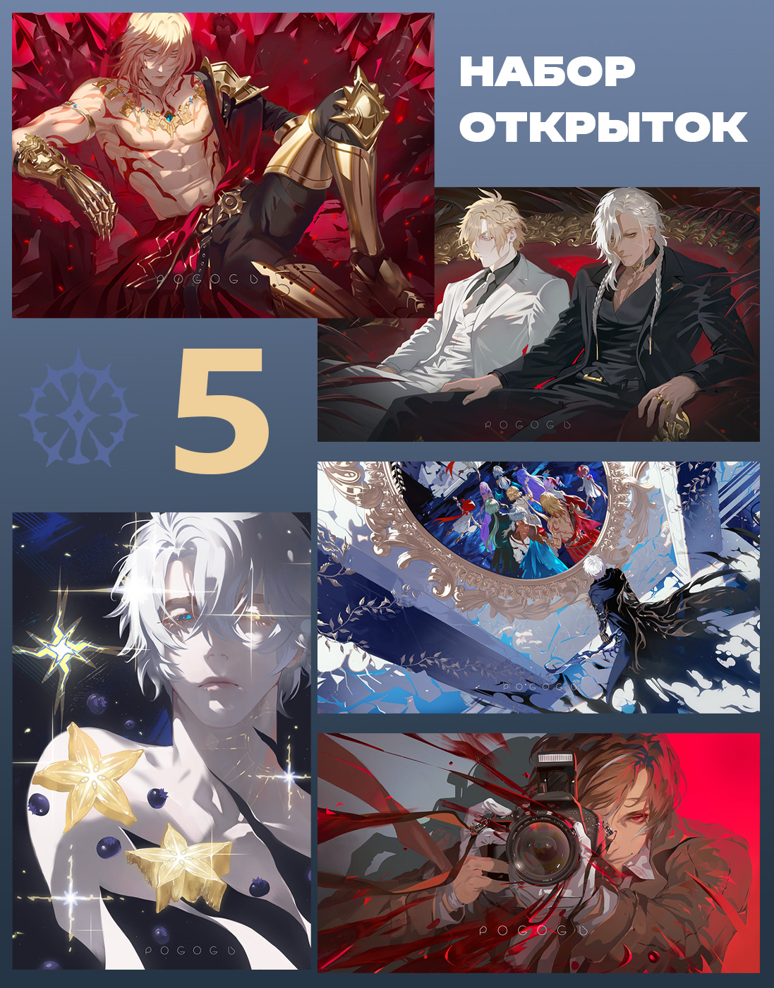 Набор из 5 открыток от художника Pogogu.- Иллюстрации напечатаны на дизайнерской бумаге плотностью 300 г/м2.