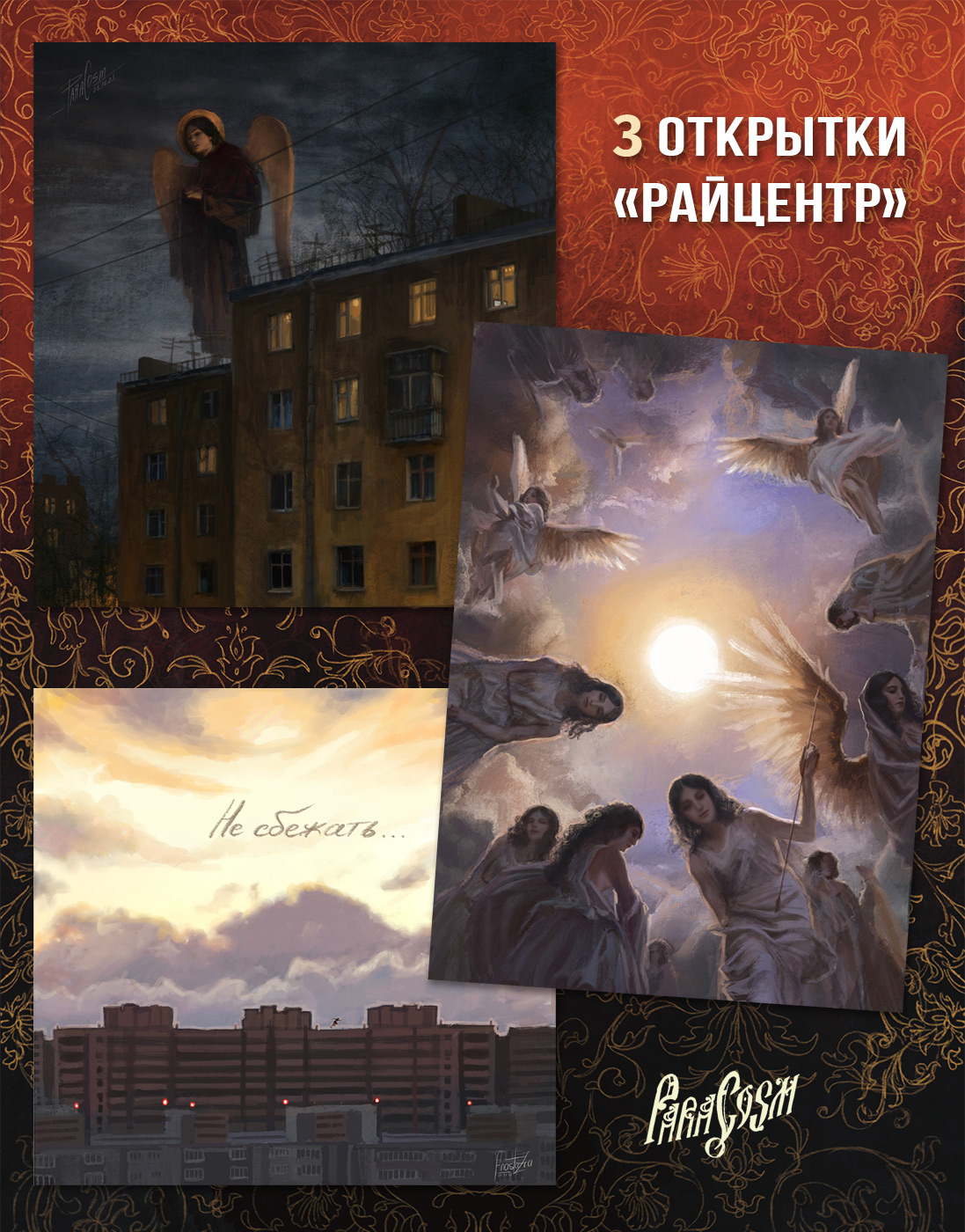 Набор «Райцентр» включает в себя 3 открытки с атмосферными иллюстрациями художницы ParaCosm. Изображения напечатаны на дизайнерском картоне плотностью 300 г/м2. При печати использованы исходники автора в максимальном разрешении - арты получаются четкими и детальными, с великолепной цветопередачей. Все открытки двусторонние.Размеры - 14,6x15,8 см, 15x14,3 см, 14,8x10,5 см (А6).