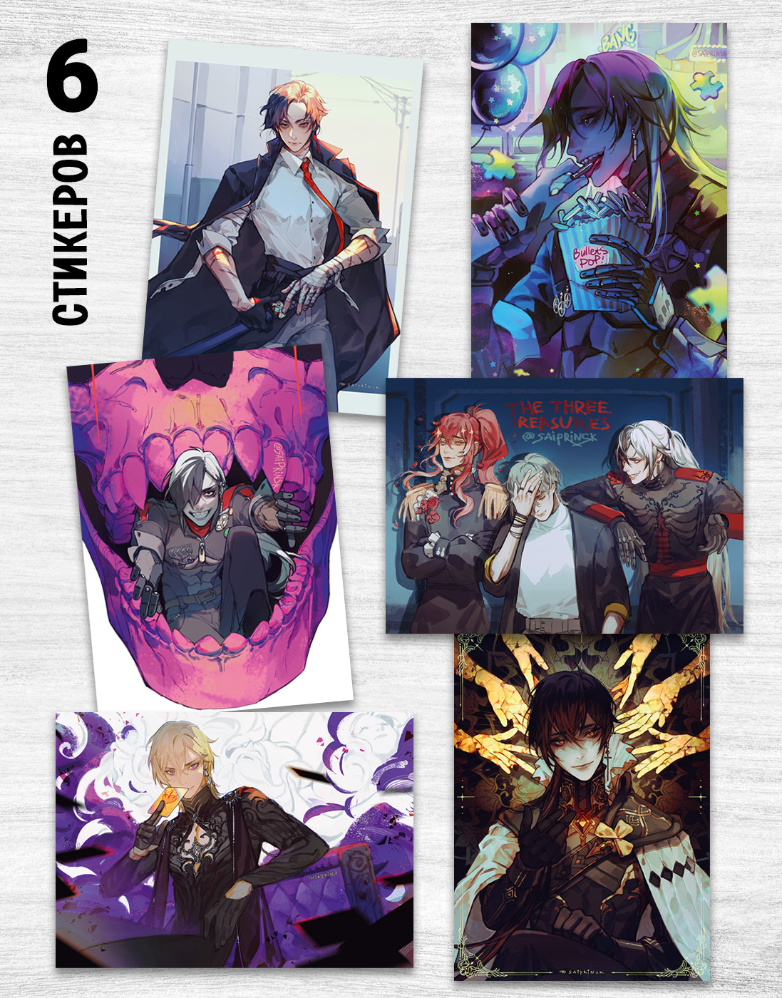 Набор из 6 полимерных стикеров от художницы SaiprinSK. Изготовлены из качественной плёнки на профессиональном оборудовании, что обеспечивает их яркость и долговечность. Великолепная цветопередача и насыщенные цвета. Наклейки отлично приклеиваются на любую гладкую поверхность и подойдут для украшения ноутбука, смартфона, интерьера или ежедневника. Стикеры устойчивы к влаге и не выгорают на солнце.Размер - 8,5х6 см