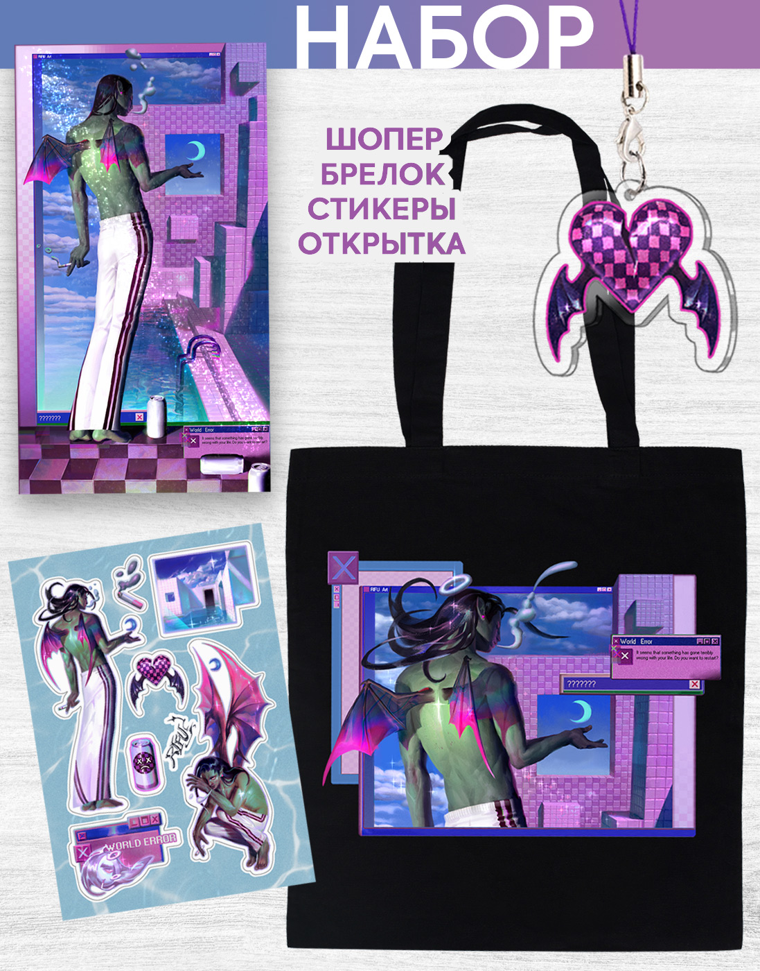 Набор «World Error» от художника RIFU hata включает в себя:- Шоппер