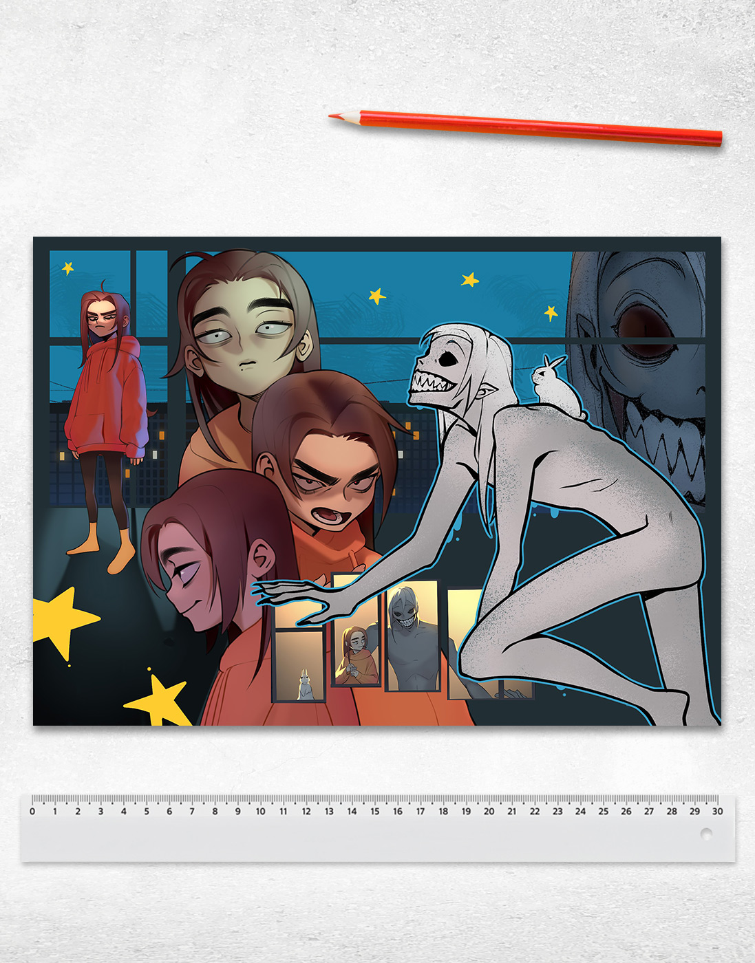 Авторский постер в стиле аниме с оригинальными персонажами комикса BloXa. Композиция составлена из отдельных элементов разного масштаба. Идеально впишется в пространство, как самостоятельная деталь интерьера, так и среди других плакатов и фоток. Иллюстрация напечатана на качественной плотной бумаге 300 г/м2, она более износостойкая, ее тяжелее случайно повредить, поэтому постер прослужит вам долгие годы.Размер - А4 (21×29,7 см)