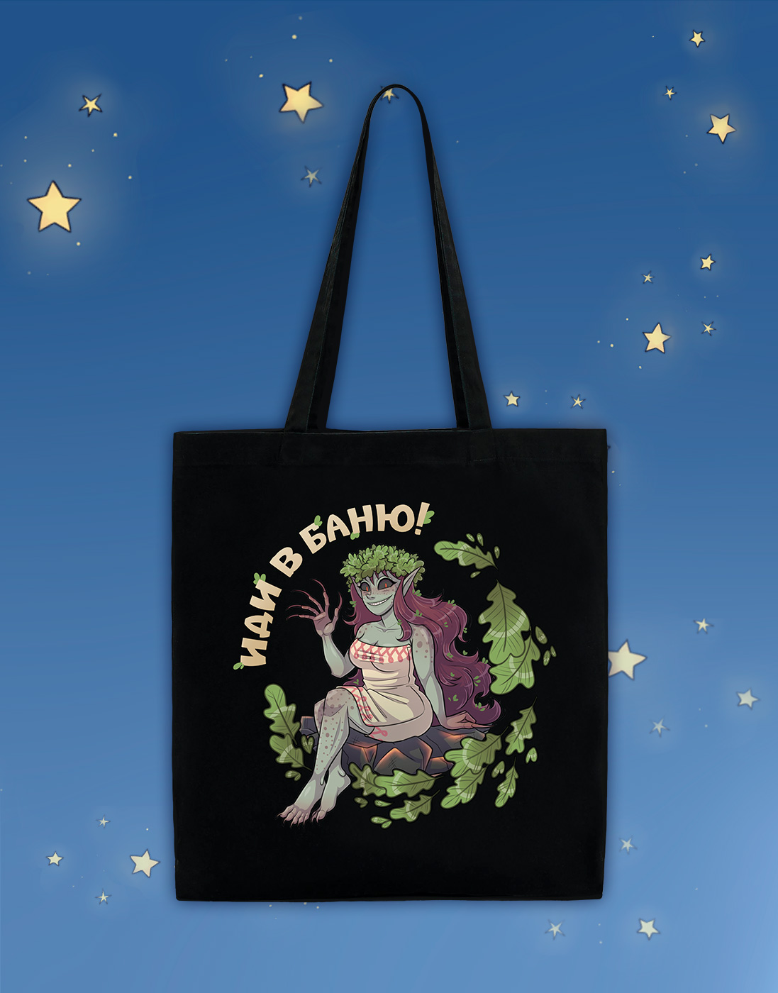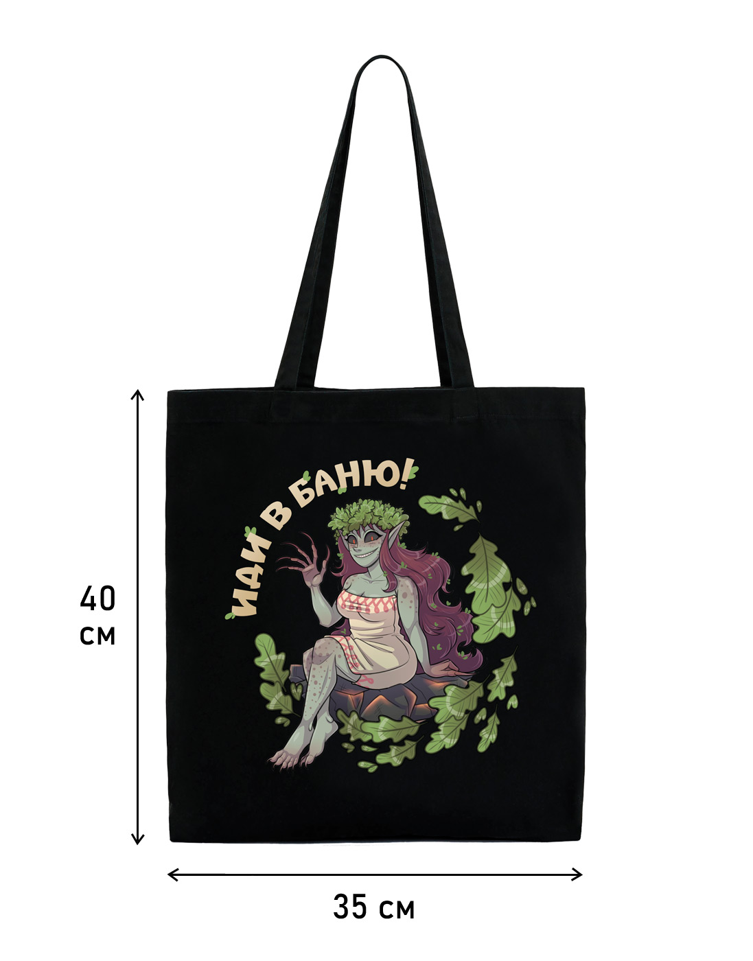 У нечисти все не как у людей. Услышать "Иди в баню!" от человека - значит вас прогоняют. Услышать то же самое от обдерихи - вас радушно зовут в гости. Не забудьте положить полотенчик в шоппер. Сумка удобного размера 35х40 см, с внутренним карманом для смартфона, документов и полезных мелочей. Прочный, вместительный шоппер из плотной саржи 260 г/м2, с усиленными двойной строчкой ручками. Прослужит долгое время и будет радовать вас и окружающих эффектным персонажем.Характеристики