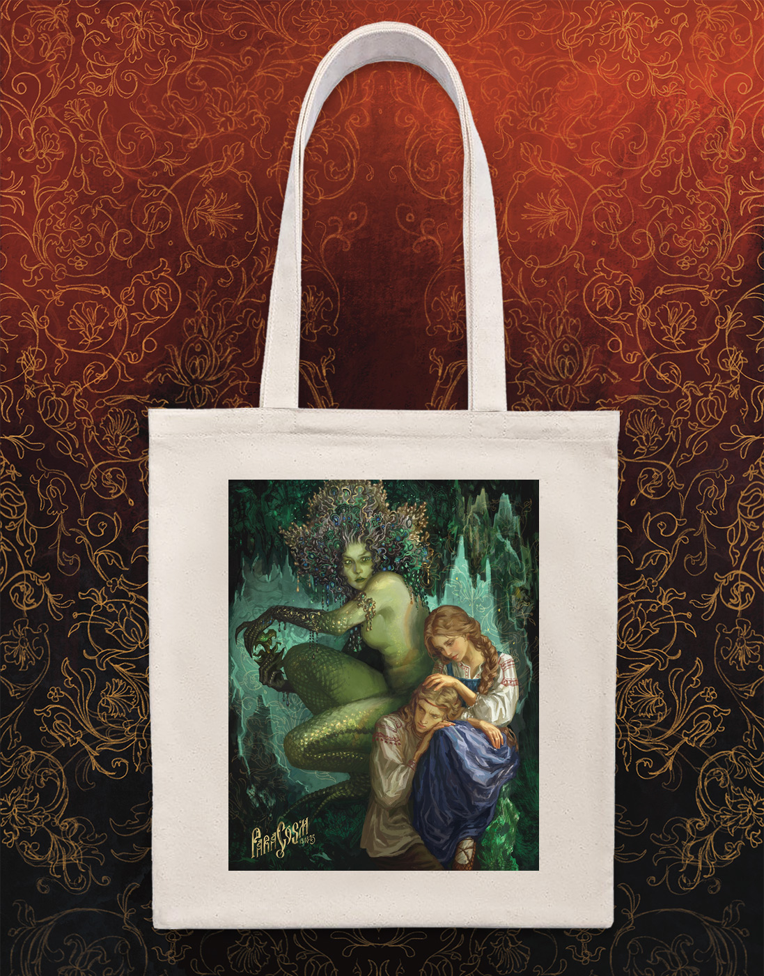 Шоппер с дизайном «Хозяйка Медной горы» от художницы ParaCosm.- Сделана из плотной неокрашенной саржи 260 г/м2