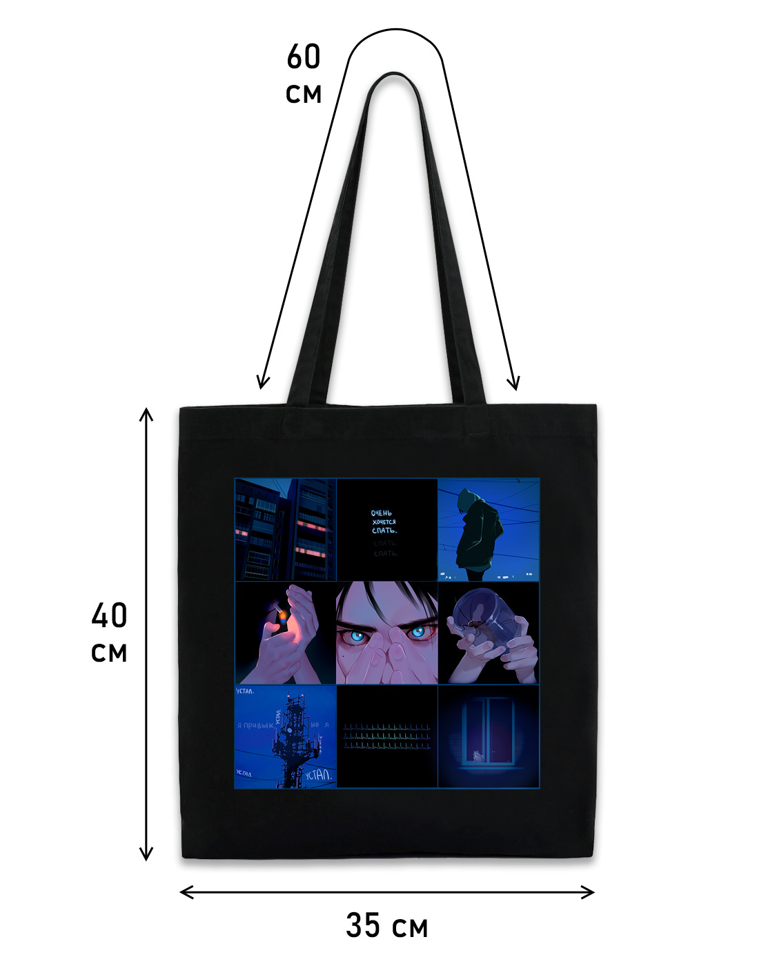 Сумка шоппер с эстетичным дизайном от художницы BloXa.- Шоппер из саржи повышенной плотности 260 г/м2