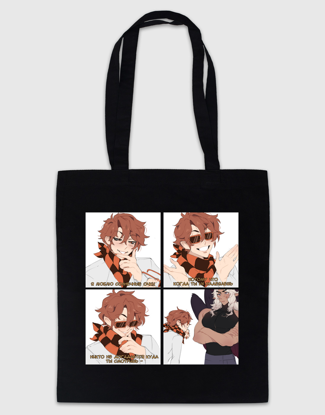 Черный шоппер с забавным принтом "Солнечные очки" от художницы ilwha.- Шоппер из плотной саржи 240 г/м2
