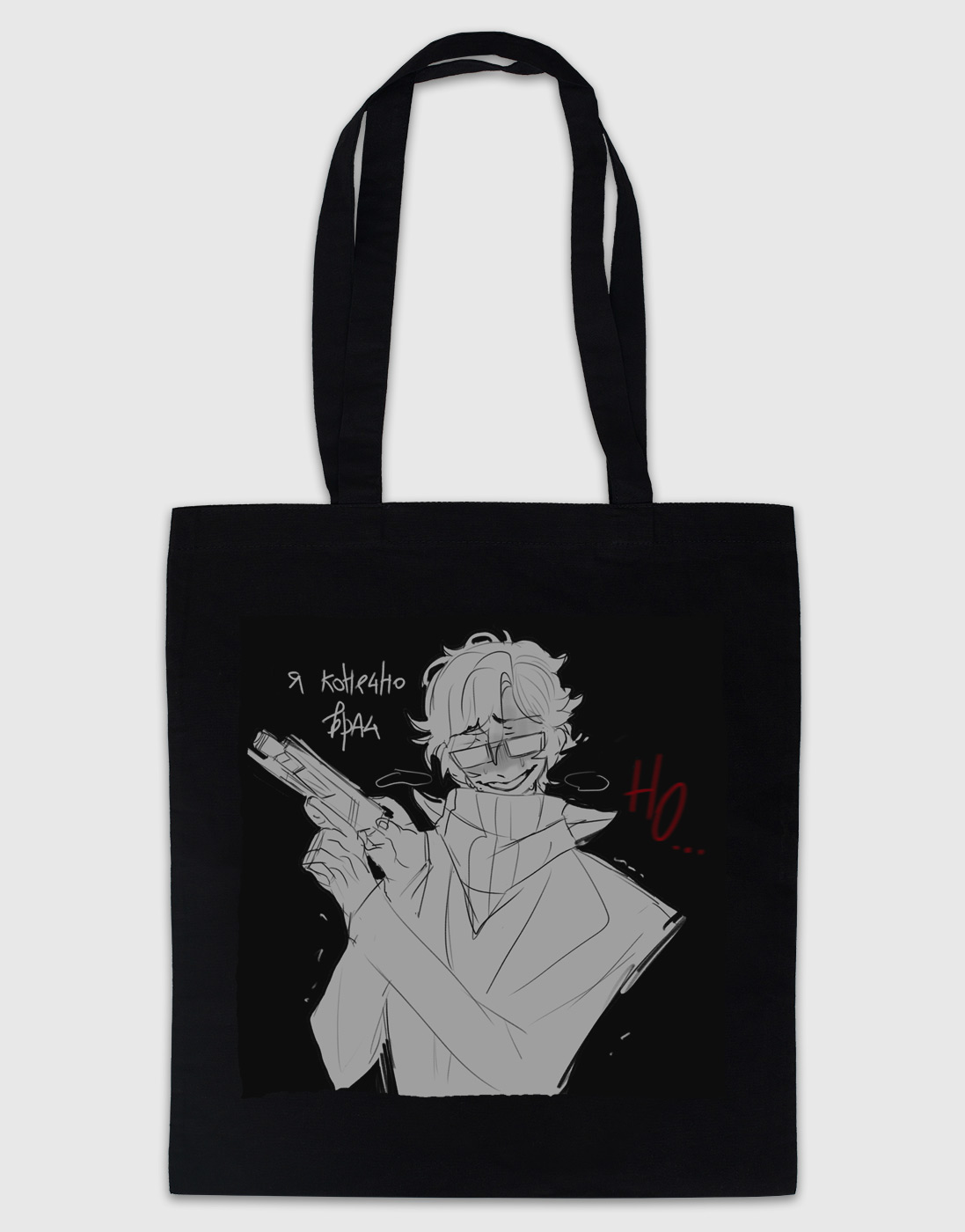 Черный шоппер с принтом "Я конечно врач, но..." от художницы ilwha.- Шоппер из плотной саржи 240 г/м2