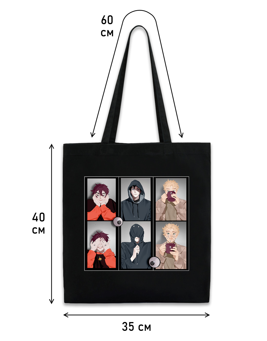 Оригинальный шоппер с авторским аниме дизайном от художницы BloXa. Запоминающийся принт с пацанами обращает на себя внимание и с легкостью дополняет стильный образ. Универсальный размер сумки 35х40 см вмещает в себя все необходимое и даже больше. Документы А4, книги, ноутбук, пару кроссовок - запросто. А внутри шоппера есть дополнительный карман для телефона и важных мелочей. Экосумка изготовлена из качественного 100% хлопка плотностью 260 гр/м2. Принт нанесен технологией DTF на профессиональном оборудовании, он очень стойкий, не рвется и не выцветает после стирок.Характеристики