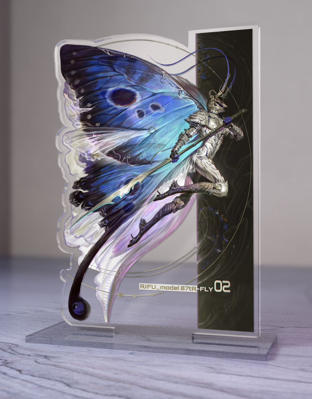 Стенд «Model 87tR-FLY 02» от художника RIFU hata. Верный рыцарь всегда исполнит свой долг, невзирая на габариты.- Прозрачный акрил подчёркивает глубину работы, а блики играют с освещением, как живые.