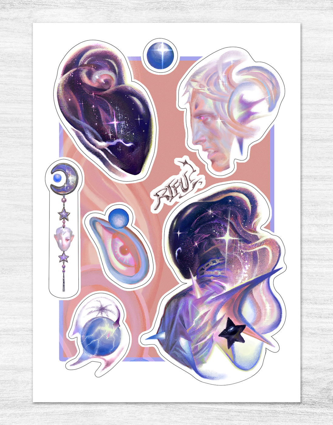 Стикерпак «Это просто сон?» от художника RIFU hata. Всегда ли сны, лишь шёпот далёких миров?- Наклейки с фигурной резкой по контуру.