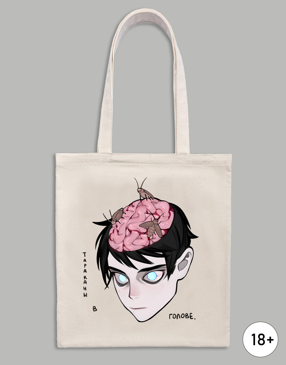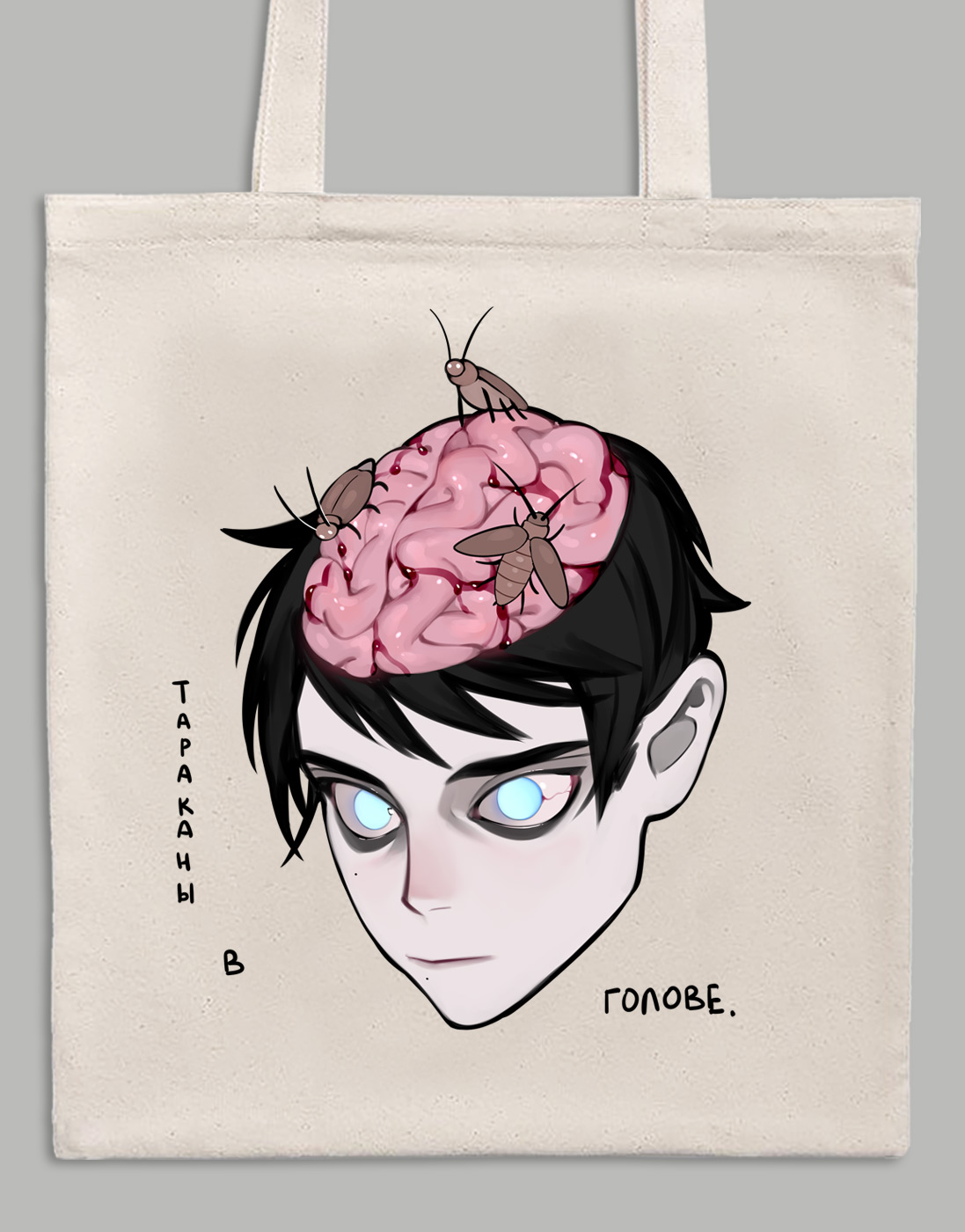 Оригинальная сумка шоппер с принтом "Тараканы в голове" от художницы BloXa.- Шоппер из плотной неокрашенной саржи 260 г/м2