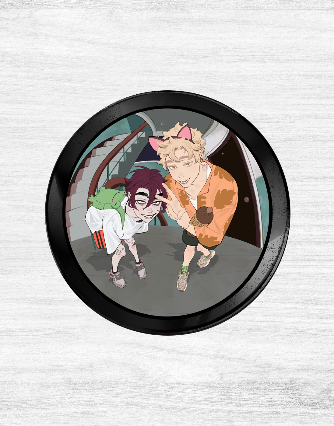 - Круглый закатной значок из металла с нанесенным артом с ламинированием